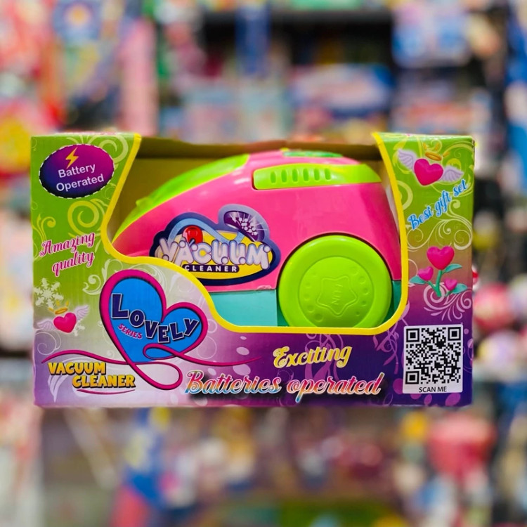 جاروبرقی dorj toy نیاز به 2 عدد باتری 1.5 ولتی دارد و مانند یک جارو برقی واقعی دکمه روشن و خاموش دارد و در هنگام کار کردن چراغ آن نیز روشن می شود