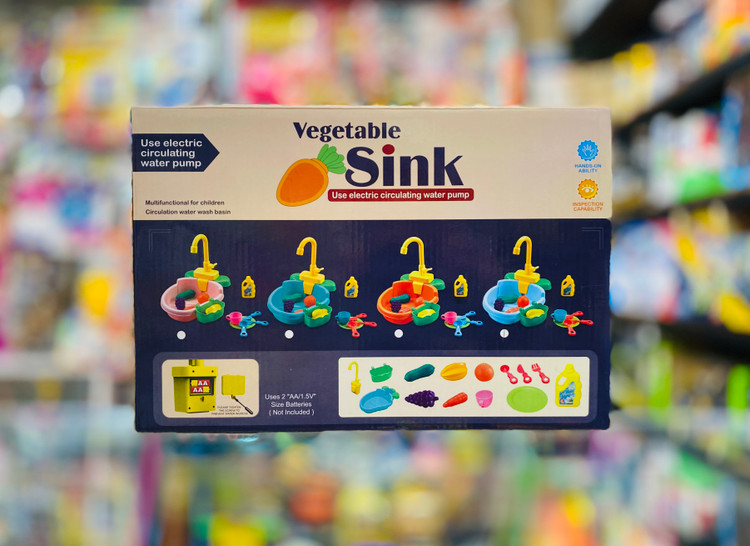 دیدن محصولات مرتبطسینک ظرفشویی یک اسباب بازی مهیج و سرگرم کننده است که کودک با شستشوی ظروف و میوه ها حس خوبی را تجربه می کند. با ریختن آب داخل سینک و چرخاندن شیر آب، پمپ آب که توسط دو عدد باطری قلمی تغذیه می شود روشن شده و آب را از دهانه شیر آب سرازیر می کند و کودک می تواند با قرار دادن ظروف و میوهجات که داخل بسته بندی قرار دارد ، شروع به شستن آنها کند. این محصول یک هدیه جذاب و جدید برای کودکان شماست خرید این محصول را به شما پیشنهاد می کنیم