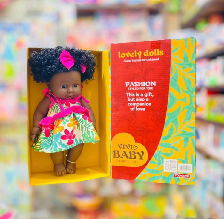 عروسک دختر سیاه مو فرفری به ارتفاع 44 سانتیمتر ( سایز بزرگ) در حالت سر پا . دارای کیفیت عالی